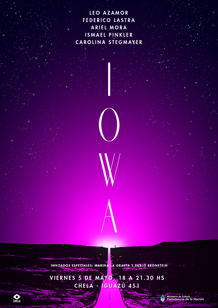 El viernes 5 de mayo, cheLA recibe: IOWA, a partir de las 18.00hs hasta las 21.30hs, en el Taller Performático Tecnológico en cheLA, Iguazú 451.