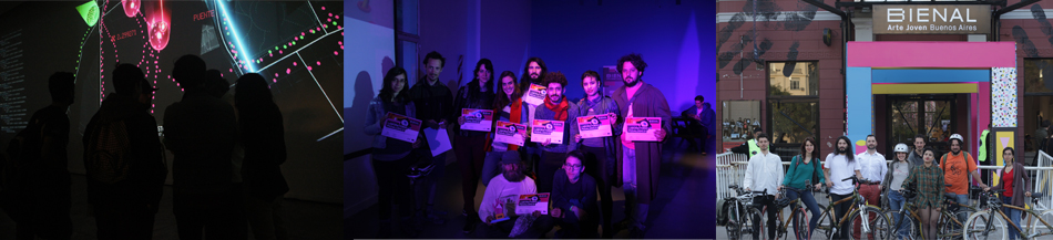 "Equipadas con instrumentación informática y mediática las bicicletas registran su andar y su entorno. Las derivas construyen en tiempo real una representación inmersiva de la ciudad explorada en el Observatorio Pedalúdico, en la Sala 6 del Centro Cultural Recoleta."(Bienal de Arte Joven)